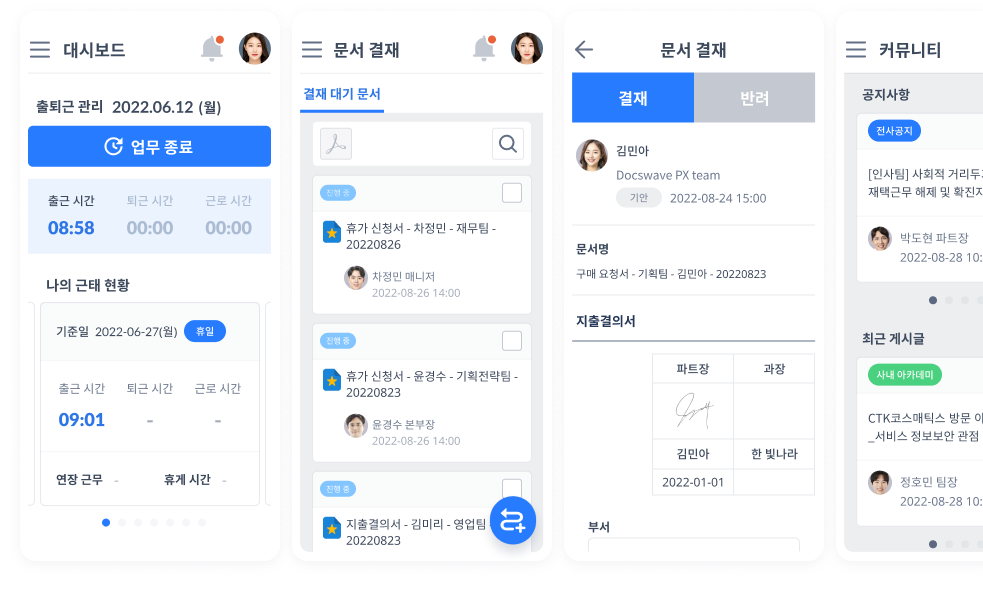 신속한 의사결정을 진행할 수 있고, 게시판을 통해 협업을